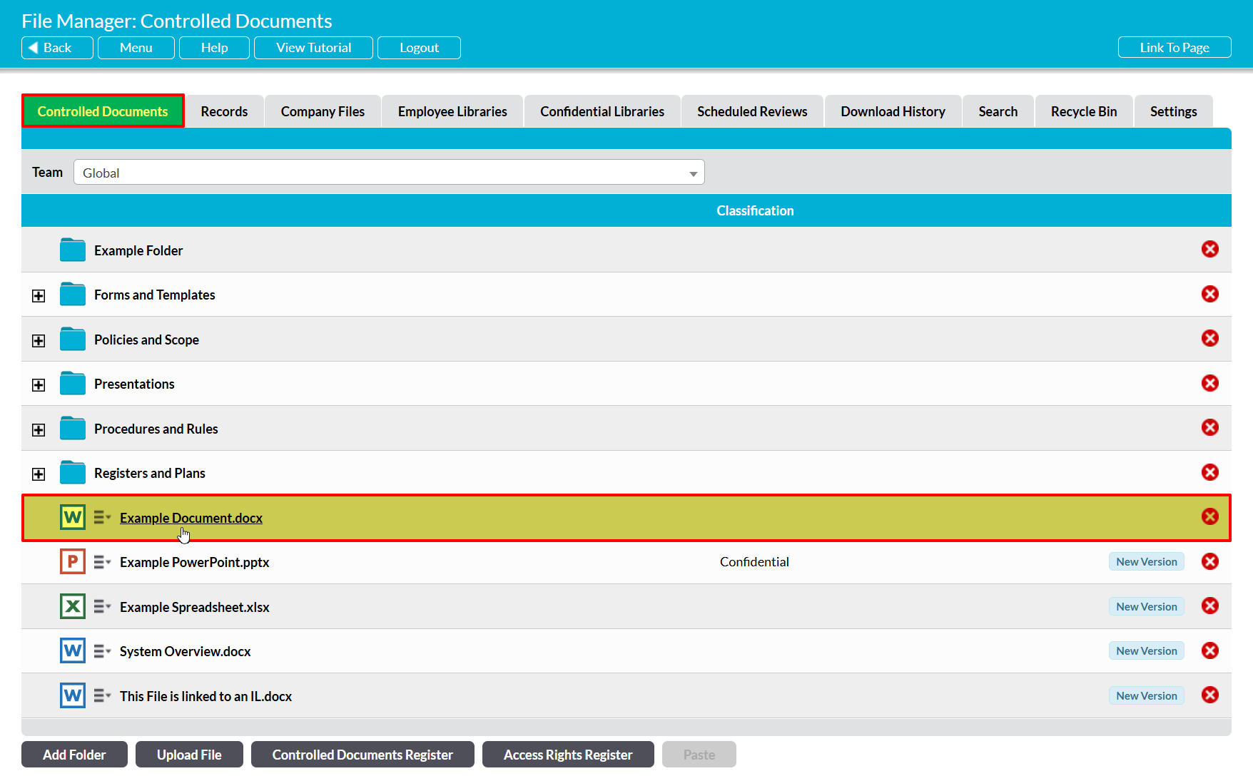 This makes the Preview function an ideal way of viewing your files when you need to refer to or familiarise yourself with their content. However, it is not suitable for use when you need to modify content. If you need to update a file, you will need to download it (see Download a File for Viewing or Editing).