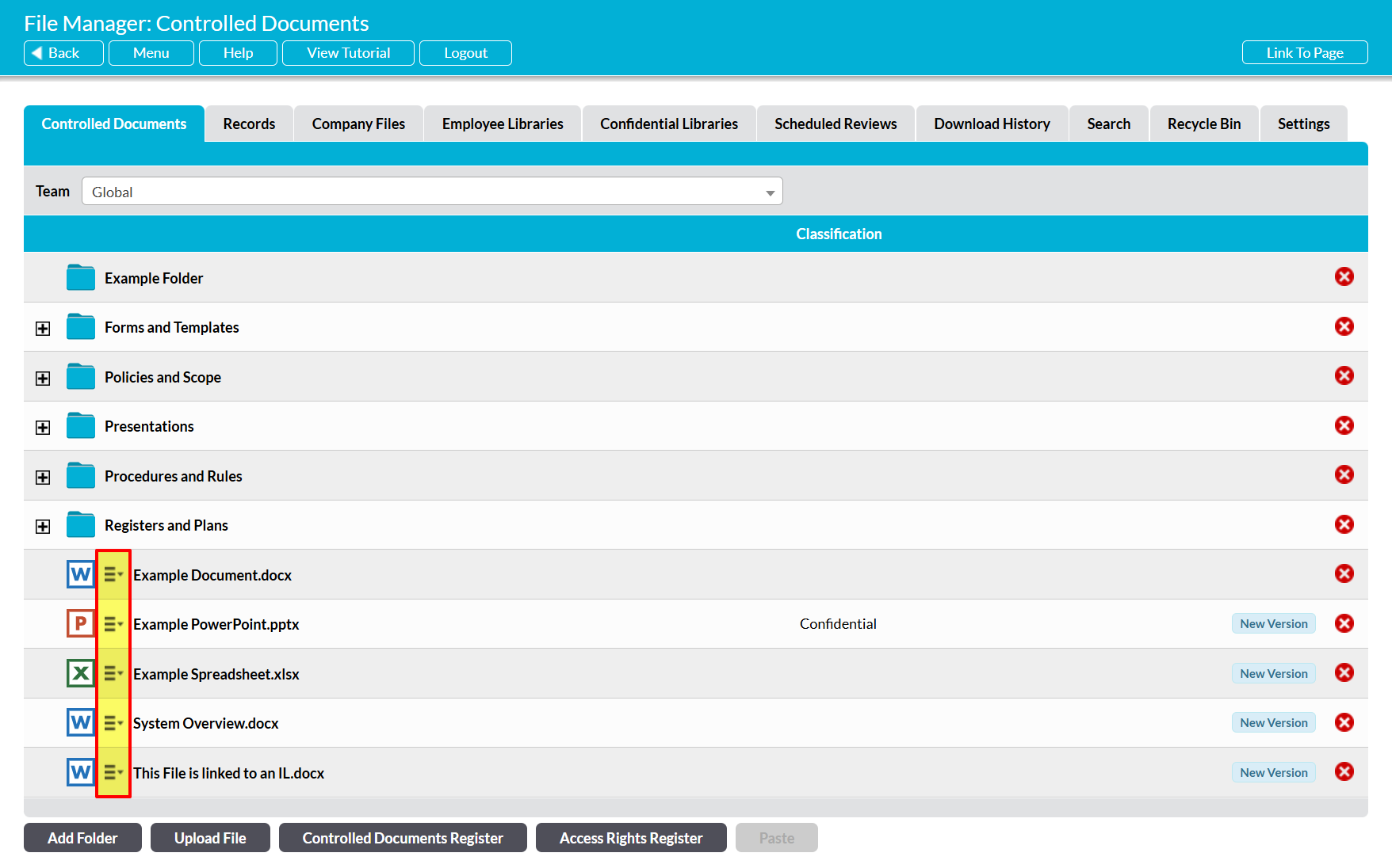 Alternatively, if your Registers’ Primary File Behaviour is currently set to ‘Download’, then you will need to click on the hamburger icon displayed to the left of the appropriate file’s record instead of clicking on its name.